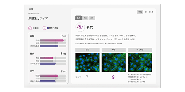独自技術「モーションスキャンテクノロジー」を用いて肌三層を細胞レベルで推測
