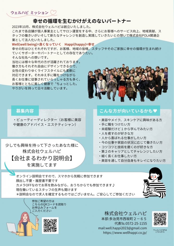 第2のキャリアとしてチャレンジしたい方を対象に、ウェルハピでは